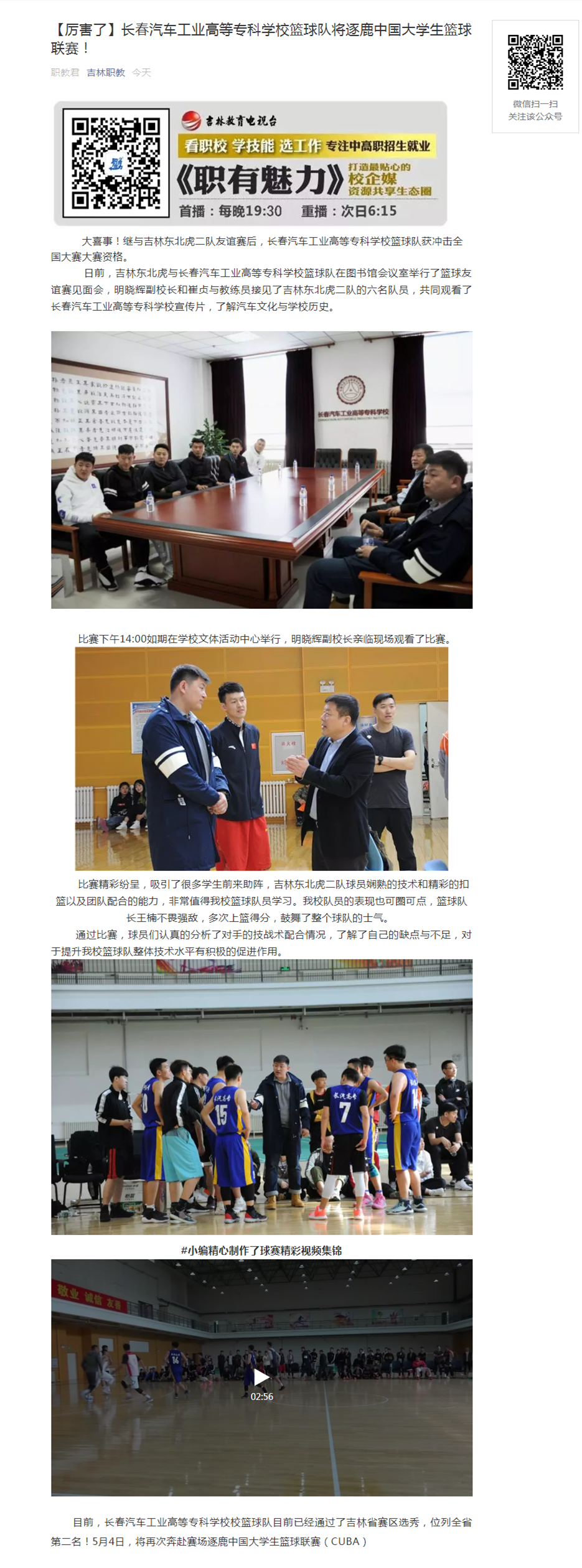 吉林职教——厉害了!长春汽车工业高等专科学校篮球队将逐鹿中国大学生篮球联赛!