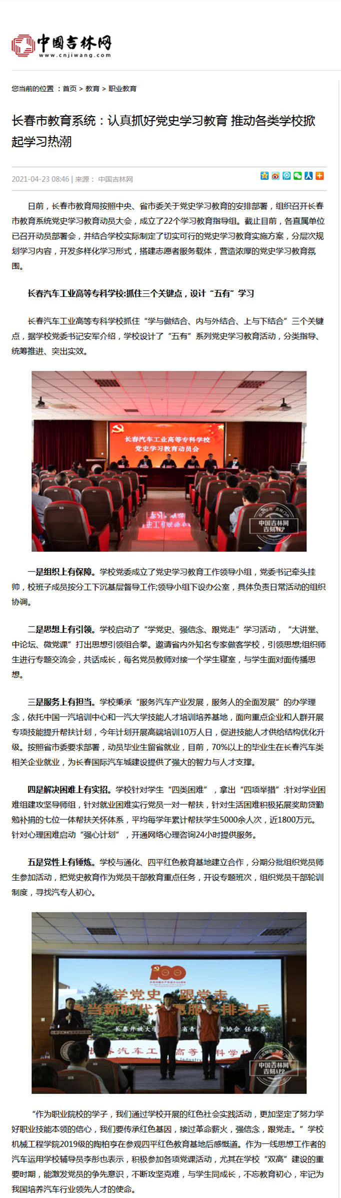 中国吉林网——长春汽车工业高等专科学校:抓住三个关键点,设计“五有”学习